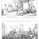 I reworked the first panel from the first comicbook published in the U.S., The Adventures of Obadiah Oldbuck (1841) – originally drawn by Swiss francophone Rodolphe Töpffer in 1837. Drawn in Flash for the Agents of P.O.O.C. (Panels Out Of Context) show at Maxwell’s in Hoboken, NJ. July-August 2003.